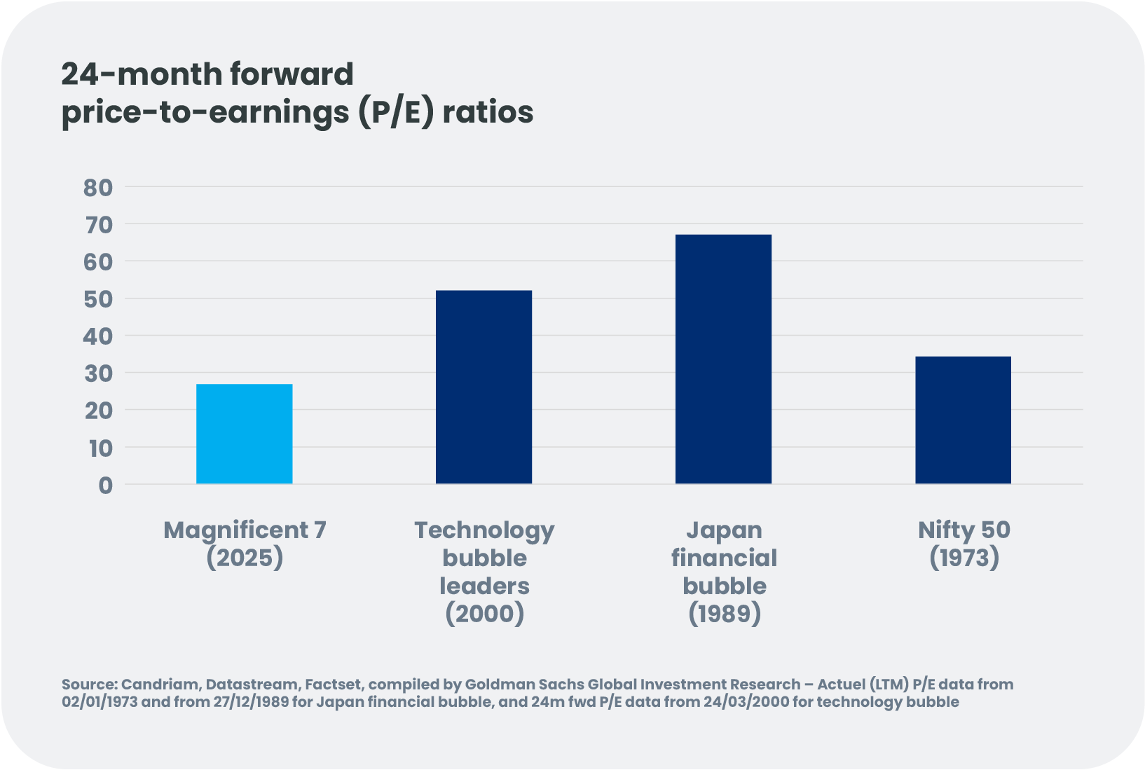 Crucially, AI is a recurring, not a one-off, revenue opportunity. Every query, model update and agent action consumes compute, supporting durable demand for infrastructure and cloud services. Yet, despite strong equity performance, valuations in the AI ecosystem are far more grounded - and balance sheets are significantly healthier – when compared to the dot-com bubble or other bubbles in financial history.