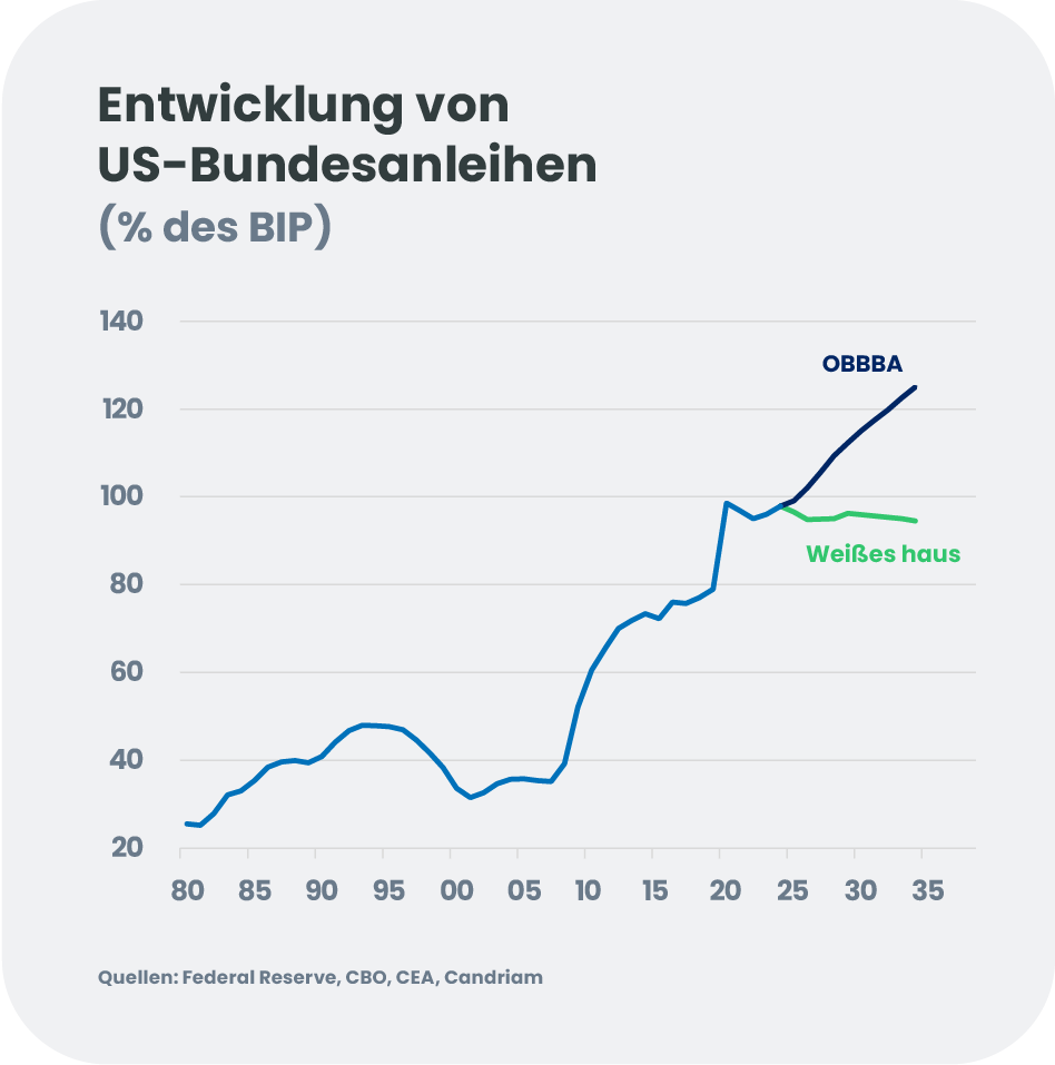 Unabhängig von der Entscheidung des Obersten Gerichtshofs dürfte der Druck des Weißen Hauses auf die Fed im Vorfeld der Zwischenwahlen zunehmen. Noch aus einem anderen Grund eher struktureller Art, der die Entschlossenheit der Trump-Regierung verstärken dürfte, eine „Kooperation“ der Zentralbank mit dem Finanzministerium zu erzwingen. Entgegen der Prognose der Wirtschaftsberater des Weißen Hauses wird das OBBBA (One Big Beautiful Bill Act) in den nächsten Jahren wahrscheinlich den Anteil der öffentlichen Schulden am BIP deutlich erhöhen. Das Finanzministerium könnte natürlich den Anteil der langfristigen Emissionen reduzieren und Stablecoins fördern, von denen ein Großteil in Staatsanleihen investiert ist.