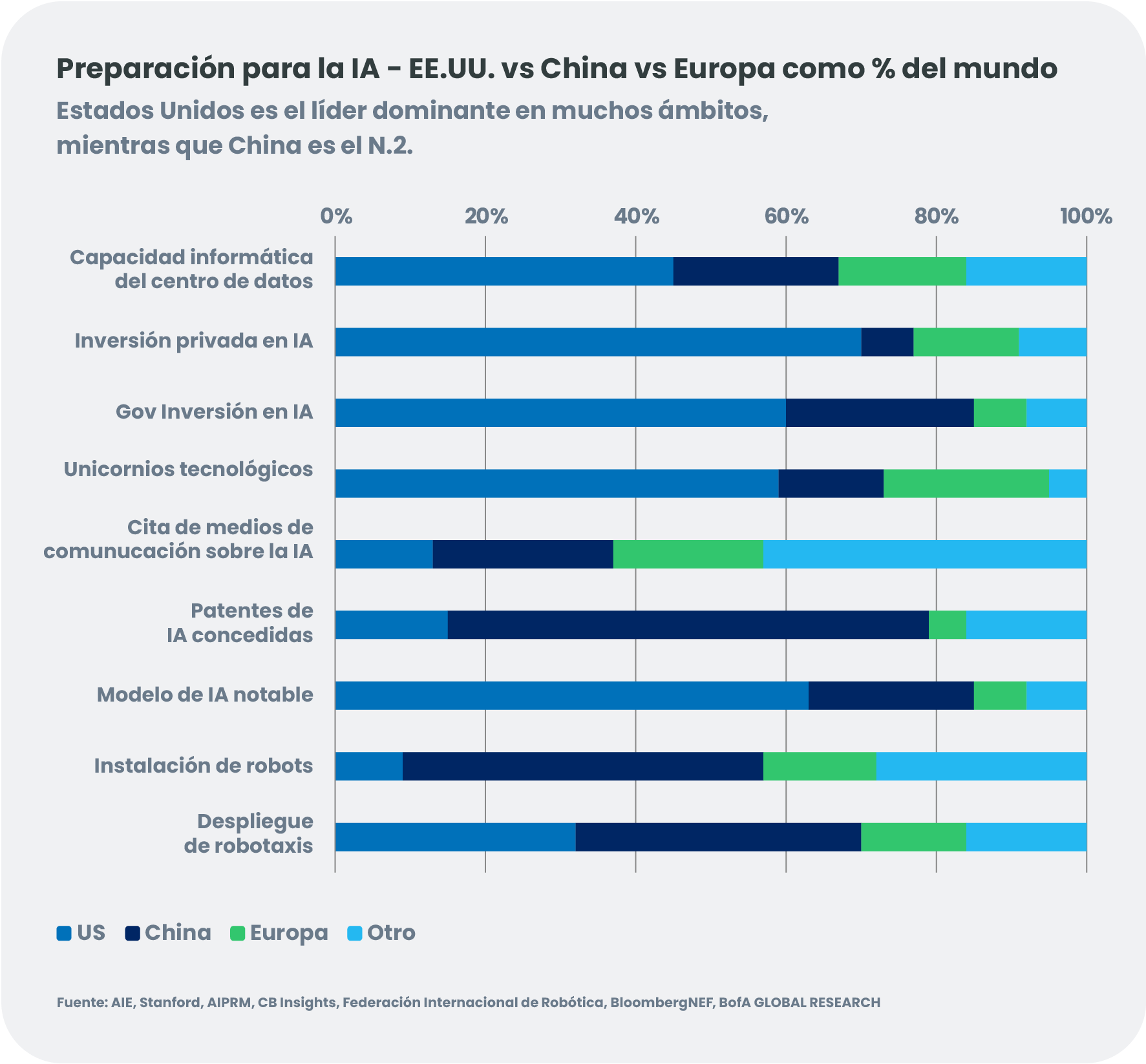 A pesar de los actuales desafíos macroeconómicos, el mercado de renta variable chino ofrece oportunidades atractivas a largo plazo impulsadas por reformas estructurales, la recuperación de los beneficios y un ecosistema innovador que está madurando. Observamos perspectivas interesantes para los líderes sectoriales en toda la cadena de valor tecnológica, respaldadas por la estabilización macroeconómica gradual y la reducción de la contracción de los precios a la producción. Esta dinámica podría posicionar a la renta variable china para una recuperación más equilibrada y duradera en 2026.
