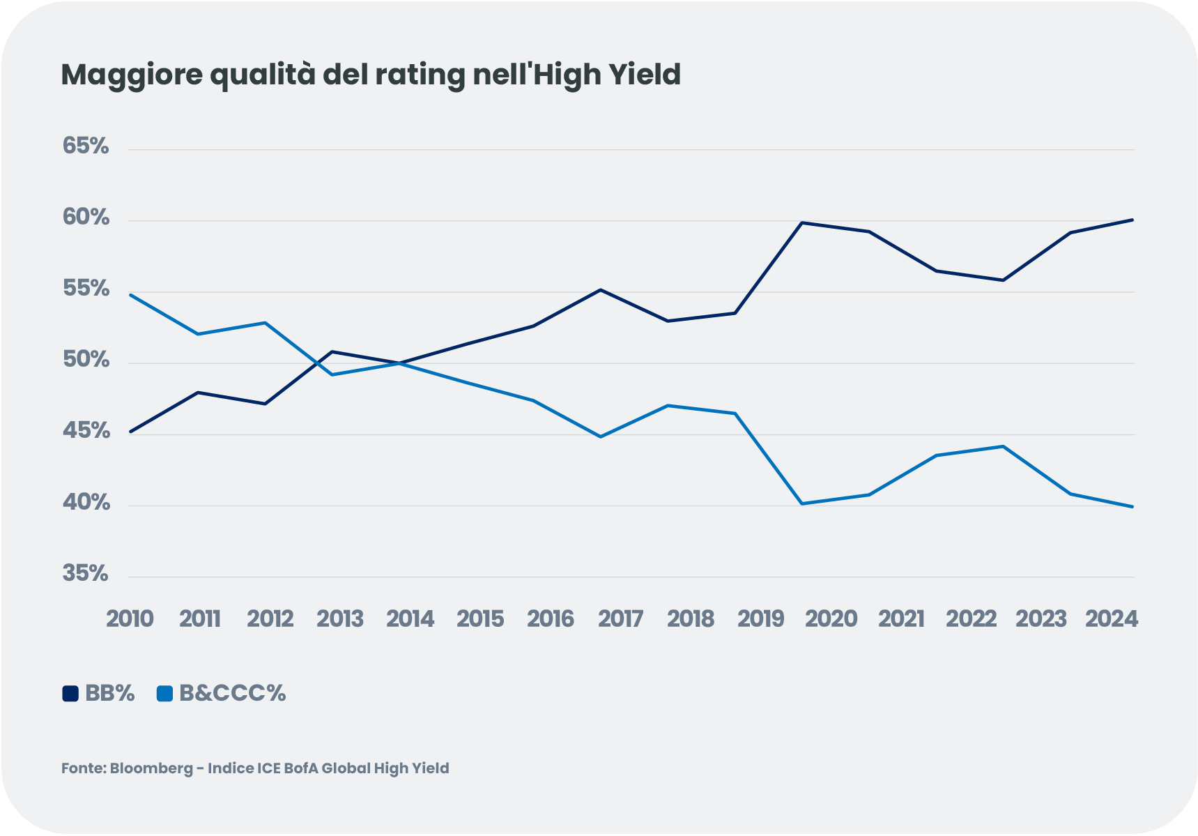Sebbene l'high yield comporti i propri rischi, il mercato attuale è più difensivo rispetto ai cicli precedenti.