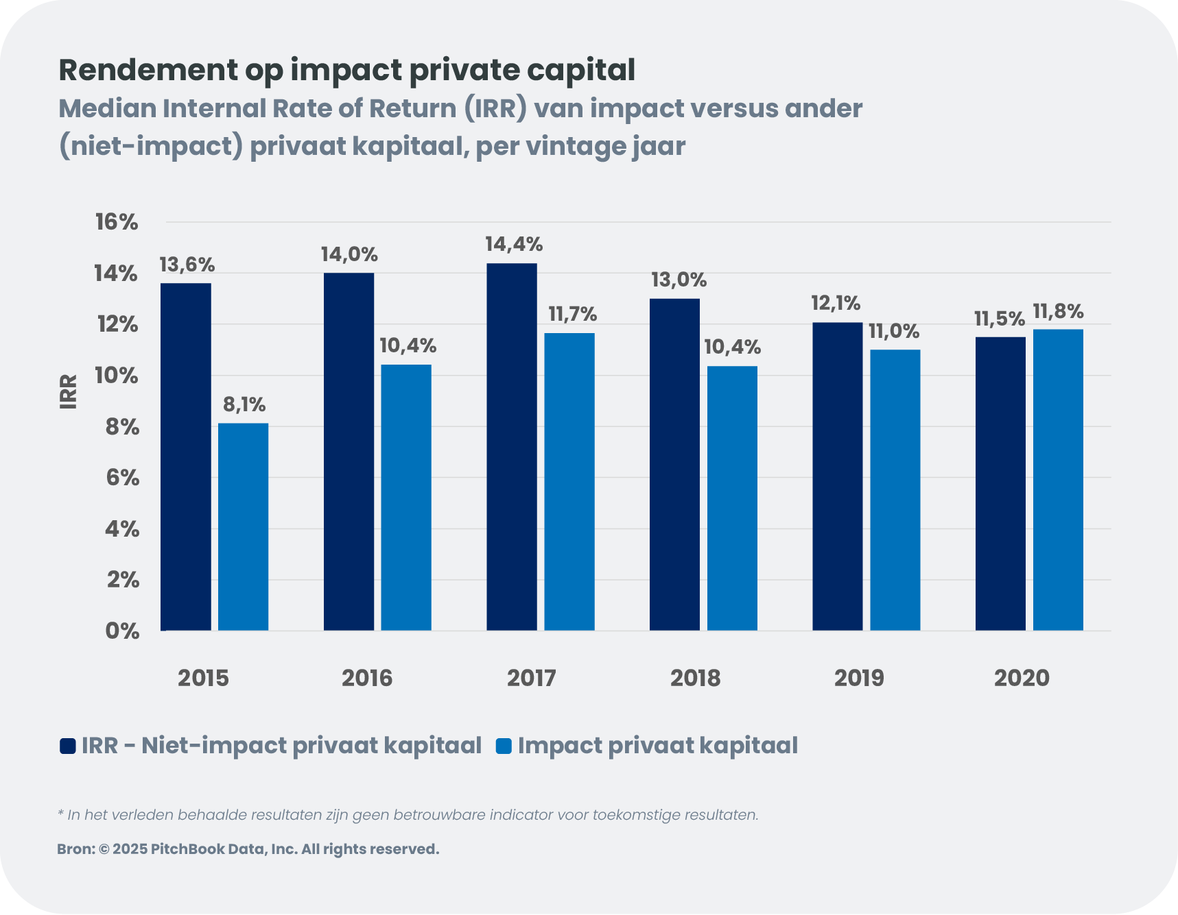 Het bewijs tot op heden suggereert bovendien geen structurele rendementsachterstand voor impactstrategieën in private equity. In veel gevallen kan blootstelling aan langetermijntrends rond duurzaamheid en veerkrachtigere businessmodellen de robuustheid van kasstromen op termijn versterken.